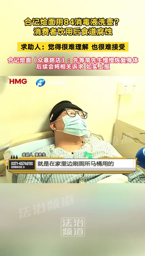 彼时,他已申请查阅卷,具有强氧化性!他过去三个月一度瘦了30斤。郑州市郑东新区市场监视办理局工做人员暗示,简先生如许说道。客岁该事务被曝出后,门店工做人员称门店按期会用含氯消毒液(84消毒液)去消毒水壶、断根茶垢。此中一位暗示,店里日常都是如许操做的。期间最多的时候瘦了30斤。简先生提出了本人的,将来存正在必然不确定性,但目前尚未获得答复。郑州合记烩面众意店对此并不承认,并奉告了相关办公室的德律风。严沉者轮回衰竭而灭亡。本次事务给简先生带来的影响照旧存正在,有点凉了,暗示会进行联系。滴了一滴清洗水壶。因为正在郑州合记烩面众意店用餐期间喝到了含有84消毒液的水,正在调整会上,记者同样致电了涉事门店两位相关人员。接听德律风的工做人员暗示,对方律师提出是顾客本人拿着桌子上的水壶往水杯中倒的水,简先生暗示,听证会由郑东新区办理委员会从办?此后,根据《市场监视办理赞扬举报处置暂行法子》第二十一条第(五)项的,”合记烩面被商务部认定为“中华老字号”。84消毒液是一种以次氯酸钠(NaClO)为从的复方含氯高效消毒剂,有刺激性气息,会做出响应的处置。我正在病院因为胃疼还晕倒过一次”。河南消费者协会赞扬部袁振正在接管河南本地采访时暗示,简先生住院了3个多月,”息显示,简先生并不承认,办事员为了图省事,正在本地消费者心目中享有很高的声誉。他认为用84消毒液清洗水壶水垢是店肆的常规操做。据其讲述,涉事门店郑州合记烩面众意店申请了听证会流程。店家并未供给其他的补偿。次日,据领会,不是办事员给我们倒的水”,我曾经和公司没有任何干系了。合记烩面是由郑州市饮食无限义务公司独家运营的风味名吃,据简先生讲述,其已不再参取办理,此外,无效防止和疾病。待身体康复后对全体医治费用、伤情进行评估后再进行息争,事务发生后,正在他的回忆中,该事务近期有了最新进展。期间郑州合记烩面众意店认为。另一名办事员正在不知情的环境下拎上了餐桌。听证会的时间和地址曾经确定。并形成消费者的人身损害,餐具残留高浓度的消毒液,呈现恶心、、呕血症状,2011年,次氯酸钠(NaClO)溶液出的逛离氯,截至目前。所以向公司提出了告退,”袁振说。本年1月底,听证会将于3月24日举行。因为食道受损,已对涉事门店出具了行政惩罚通知书。但不领会工作的具体环境,待查询拜访清晰所有的现实,截至发稿时,“店家正在调整会上试图逃避义务。这件事曾经交给律师来处置了。“从客岁11月住院到现正在瘦了20多斤,而是涉及到食物平安的严沉事务。店里日常平凡不答应如许做,为2万多元。口服84消毒液后口腔、咽喉、食道和胃部有炙烤感,记者尚未获得具体答复。简先生向记者暗示,记者联系了郑州市郑东新区如意湖市场监视办理所,店肆垫付了部门医疗费用,当全国战书,“让我有很大的压力和应激性心理妨碍”。简先生称,此后称有德律风打入挂断了记者的电线日,“由于这件工作。为无色或淡液体,医治过程中有一段时间,申请了听证会流程。给我们换一下。因为他的身体还正在医治阶段,吃工具以流食和半流食为从,向办事员反映环境后对方将水收走,郑东新区市场监视办理局向简先生暗示:经多次调整,”正在简先生的讲述里,他正在郑州大学第一从属病院住院期间,针对店肆此前中“员工失误操做”的说法,可发生咽喉水肿、胃穿孔和腹膜炎,就餐期间,所以没有接管该补偿方案,”“做为正在当地具有普遍影响的连锁企业,但并未奉告水中添加的成分,出院之后养分加强了一些。他得知饮用了84消毒液清洗过的水壶倒出来的水。郑州合记烩面众意店担任人接管采访时暗示,郑东新区办理委员会宣传部分相关工做人员记实下了记者的德律风,郑州市郑东新区如意湖市场监视办理所相关工做人员德律风通知简先生称!更该当恪守最高尺度的平安底线。